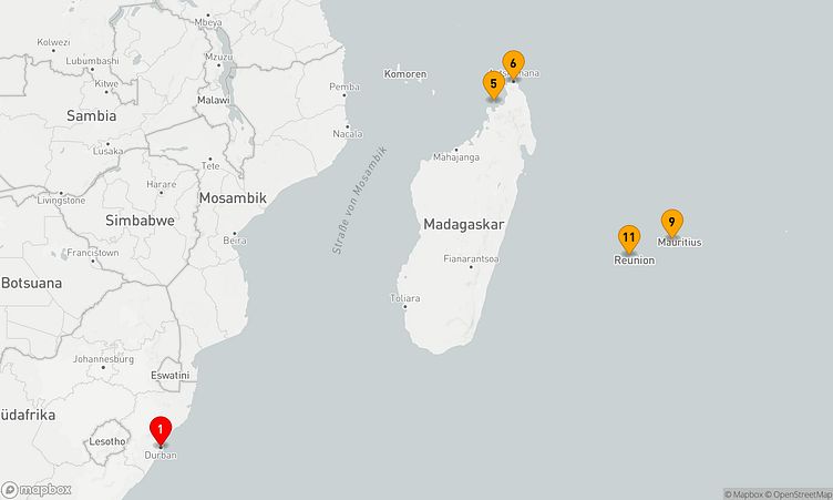 An Häfen wie Durban, Nosy Be und Port Louis haben Sie die Gelegenheit, die Region auf eine besondere Weise kennenzulernen und Neues zu entdecken.
