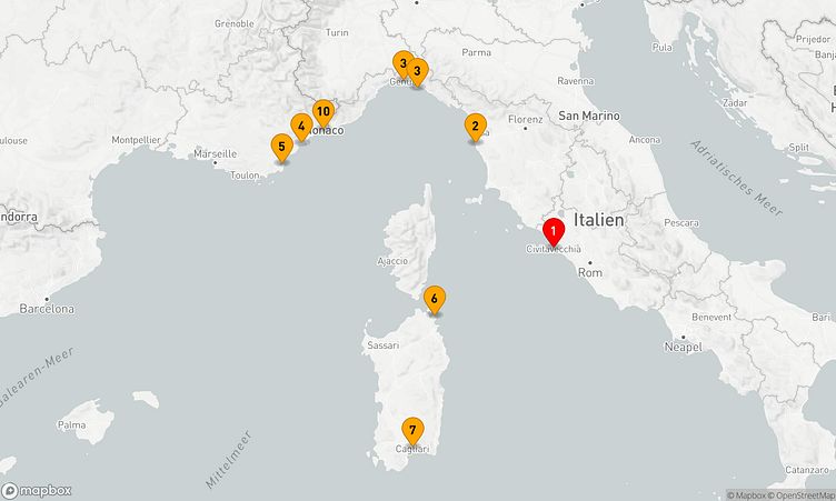 Auf Ihrer Route besuchen Sie unter anderem die Häfen von Rom / Civitavecchia, Genua und Saint-Tropez, um in das einzigartige Flair und die Besonderheiten der jeweiligen Umgebung einzutauchen.