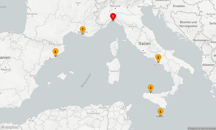 Während dieser Reise legen Sie in den Häfen von Genua, Neapel und Valletta an, um lokale Highlights zu entdecken und bleibende Eindrücke zu sammeln.