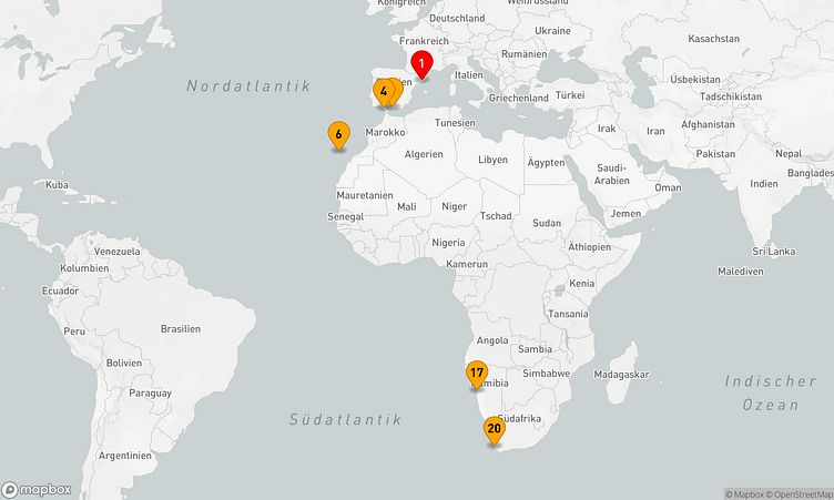 Nach Ihrem Start am 14. November 2026 in Barcelona (Spanien) führt Sie die Route über 19 Tage bis zu Ihrem Zielhafen Kapstadt (Südafrika), wo Sie am 03. Dezember 2026 ankommen.