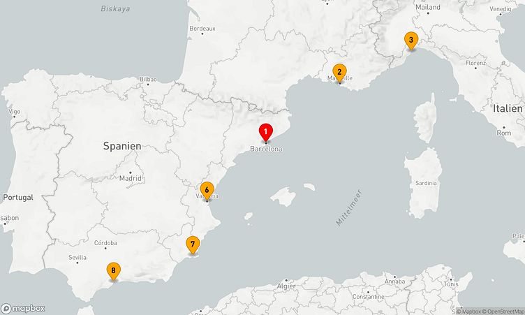 Freuen Sie sich auf Hafenanläufe in Städten wie Barcelona, Marseille und weitere, die Ihnen authentische Einblicke und besondere Erlebnisse bieten.