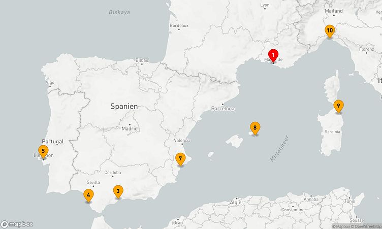 Während der Reise besuchen Sie unter anderem die Häfen von Marseille, Cádiz und Maó, die Ihnen spannende Eindrücke und einzigartige Entdeckungen bieten.