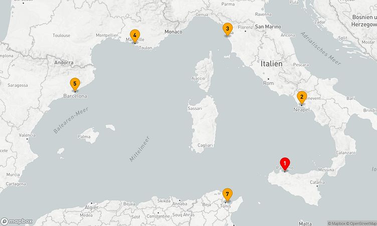 Während der Route besuchen Sie unter anderem die Häfen von Palermo, Neapel und Marseille, um das Flair und die Besonderheiten der jeweiligen Umgebung zu erleben.