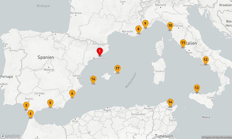 Die 17-tägige Kreuzfahrt durch das westliche Mittelmeer, „Mediterrane Entdeckungsreise ab Barcelona“, führt Sie auf eine abwechslungsreiche Route voller faszinierender Eindrücke und unvergesslicher Momente.