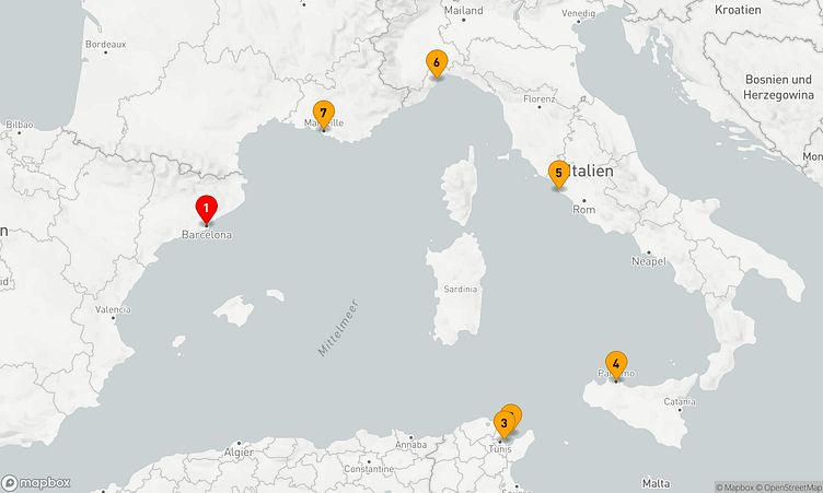 Auf der Route besuchen Sie unter anderem die Häfen von Barcelona, La Goulette und Rom / Civitavecchia, um die speziellen Eindrücke und das lokale Flair der Regionen zu erleben.