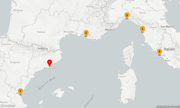 Auf Ihrer Reise besuchen Sie unter anderem die Häfen von Barcelona, Marseille und Livorno, die Ihnen spannende Eindrücke und einzigartige Entdeckungen ermöglichen.