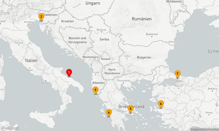 Während dieser Reise erwarten Sie Stopps in den Häfen von Bari, Triest und Athen (Piräus), wo Sie lokale Highlights entdecken und unvergessliche Eindrücke sammeln können.