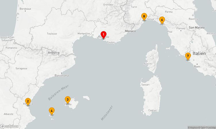 Bei Häfen wie Marseille, - und - haben Sie die Möglichkeit, die Region auf besondere Weise zu erkunden und Neues zu entdecken.
