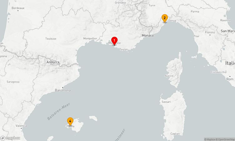 Am 22. September 2026 starten Sie in Marseille (Frankreich) und legen nach 4 Tagen am 26. September 2026 in Marseille (Frankreich) wieder an.