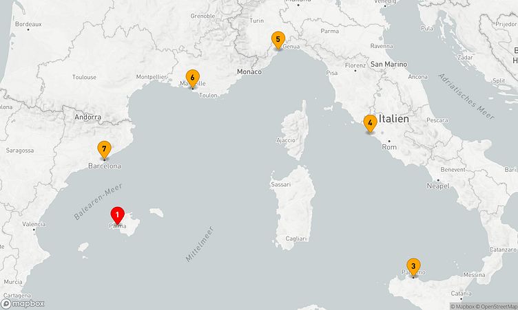 Während der Reise besuchen Sie unter anderem die Häfen von Palma de Mallorca, Palermo und Savona, die Ihnen spannende Eindrücke und einzigartige Entdeckungen bieten.