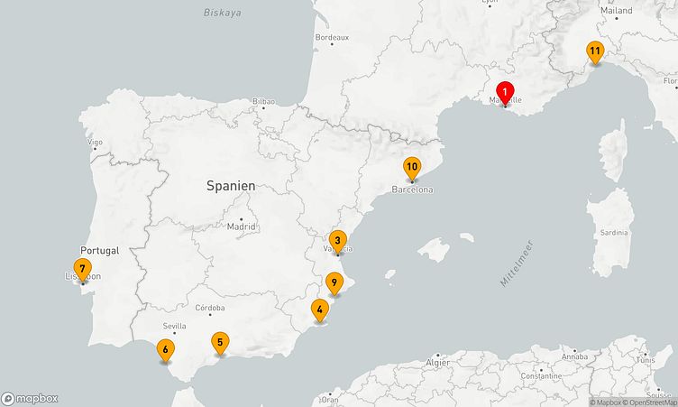 Während der Reise besuchen Sie unter anderem die Häfen von Marseille, Cartagena (ES) und Lissabon, die Ihnen spannende Eindrücke und einzigartige Entdeckungen ermöglichen.
