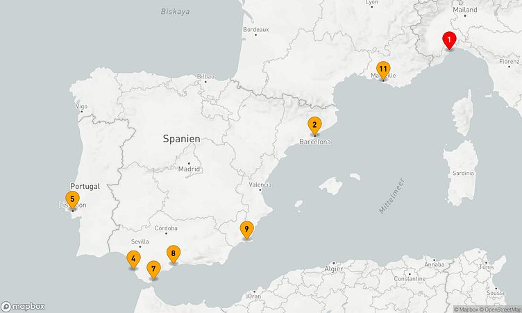 Während der Route halten Sie unter anderem in den Häfen von Savona, Cádiz und Gibraltar, um in das Flair und die Besonderheiten der Umgebung einzutauchen.