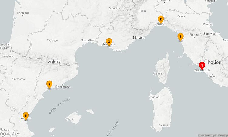 Auf Ihrer Reise besuchen Sie unter anderem die Häfen von Rom / Civitavecchia, Genua und Tarragona, wo spannende Eindrücke von Land und Kultur auf Sie warten.