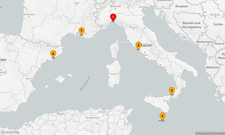 Während der Reise besuchen Sie unter anderem die Häfen von Genua, Rom / Civitavecchia und Valletta, die Ihnen spannende Eindrücke und einzigartige Entdeckungen bieten.