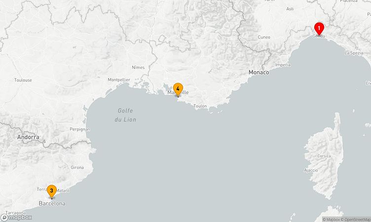 Während der Route halten Sie unter anderem in den Häfen von Genua, Barcelona und Marseille, um in das Flair und die Besonderheiten der Umgebung einzutauchen.