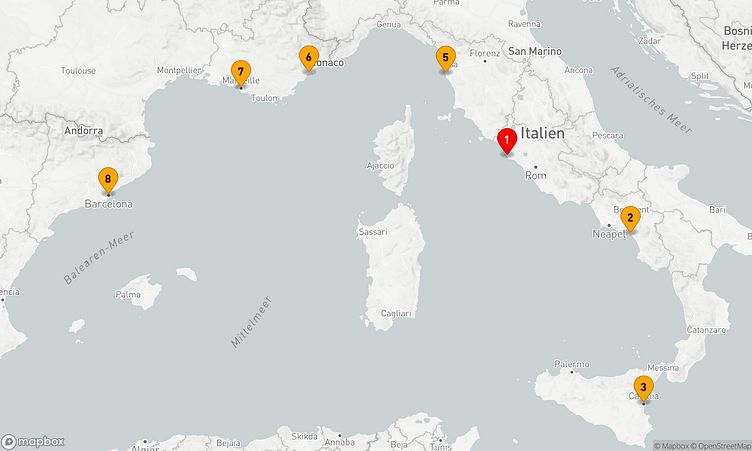 Freuen Sie sich auf Anläufe in Häfen wie Rom / Civitavecchia, Salerno und Livorno, die Ihnen authentische Einblicke und besondere Erlebnisse bieten.