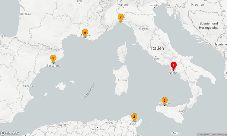 Diese Kreuzfahrt bringt Sie zu den beeindruckenden Häfen von Neapel, Palermo und Barcelona, die mit einzigartigen Sehenswürdigkeiten und lebendigen Eindrücken auf Sie warten.