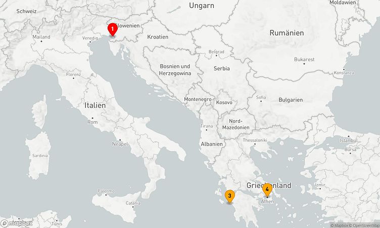 Auf dieser Tour erwarten Sie Stops in den Häfen von Triest, Katakolon und Athen (Piräus), wo Sie lokale Highlights und beeindruckende Eindrücke sammeln können.