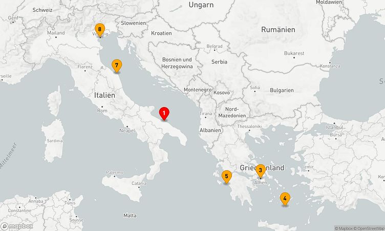 Auf Ihrer Reise besuchen Sie unter anderem die Häfen von Bari, Athen (Piräus) und Katakolon, wo spannende Eindrücke von Land und Kultur auf Sie warten.
