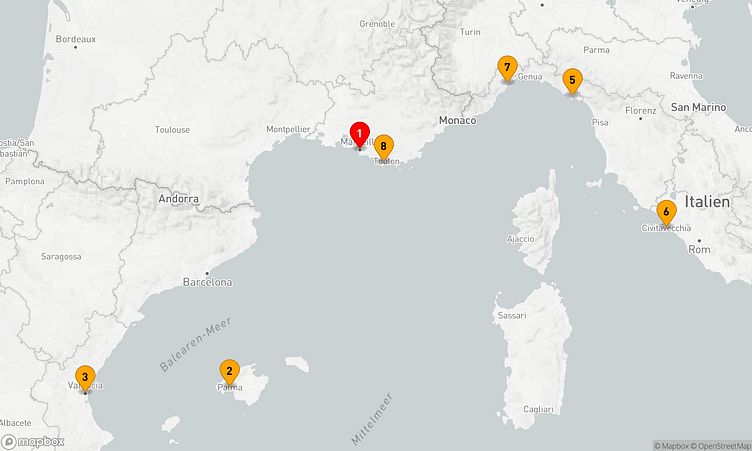 Sie starten Ihre 7-tägige Reise am 11. Mai 2026 in Marseille (Frankreich) und erreichen den Zielhafen La Seyne-sur-Mer (Frankreich) am 18. Mai 2026.