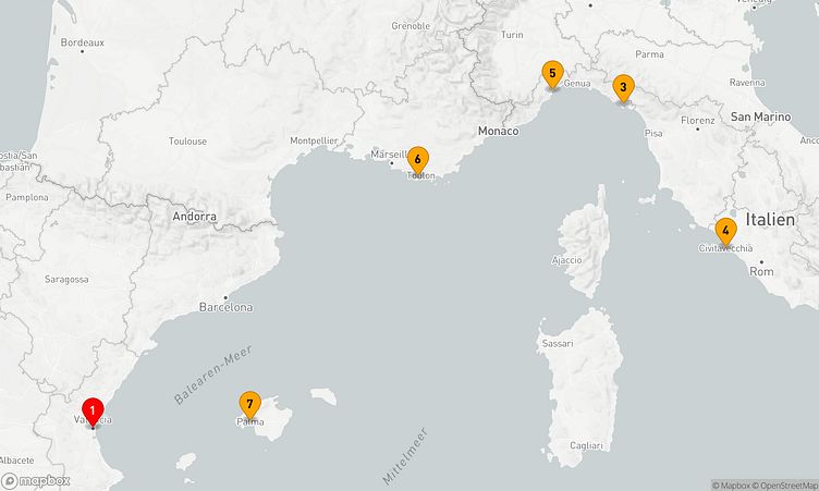 Auf Ihrer Reise besuchen Sie unter anderem die Häfen von Valencia, - und Rom / Civitavecchia, die Ihnen faszinierende Eindrücke und einzigartige Entdeckungen bieten.