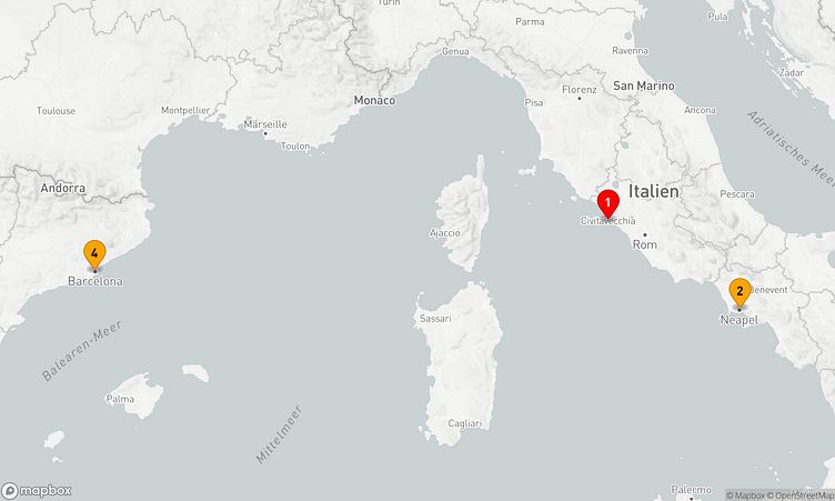 Auf Ihrer Route besuchen Sie unter anderem die Häfen von Rom / Civitavecchia, Neapel und Barcelona, wo spannende Eindrücke von Land und Kultur auf Sie warten.