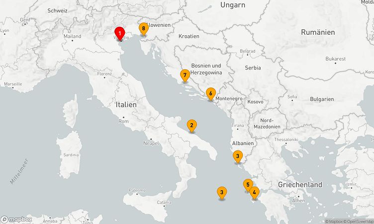Nach Ihrem Start am 26. September 2026 in Marghera (Venedig) (Italien) führt Sie die Route über 7 Tage bis zu Ihrem Zielhafen Triest (Italien), wo Sie am 03. Oktober 2026 ankommen.