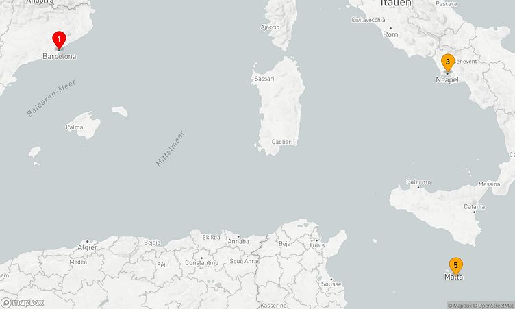 Ihre Route führt Sie zu beeindruckenden Häfen wie Barcelona, Neapel und Valletta, wo Sie die lokale Atmosphäre und das lebendige Treiben vor Ort erleben können.