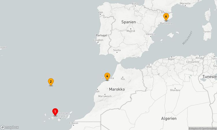 Nach Ihrem Start am 11. April 2026 in Santa Cruz de Tenerife (Spanien) führt Sie die Route über 5 Tage bis zu Ihrem Zielhafen Barcelona (Spanien), wo Sie am 16. April 2026 ankommen.
