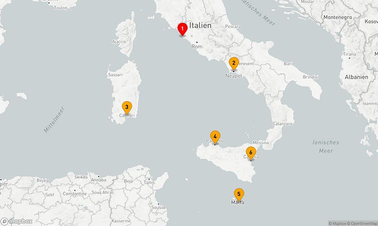 Freuen Sie sich auf Anläufe in Häfen wie Rom / Civitavecchia, Neapel und Palermo, die Ihnen authentische Einblicke und außergewöhnliche Erlebnisse ermöglichen.