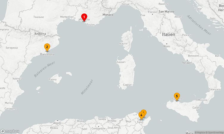 Am 01. März 2026 starten Sie in Marseille (Frankreich) und kehren nach 4 Tagen am 05. März 2026 in Palermo (Italien) zurück.