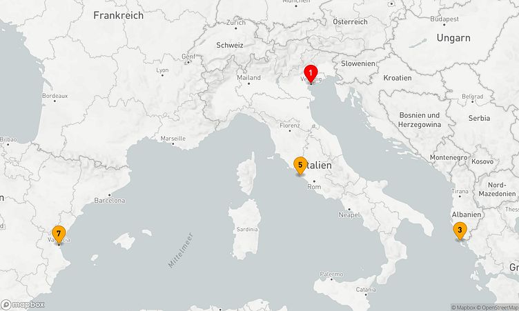 Ihre Reise beginnt am 14. November 2027 in Venedig (Italien), und nach 6 Tagen, am 20. November 2027, erreichen Sie den Hafen von Valencia (Spanien).