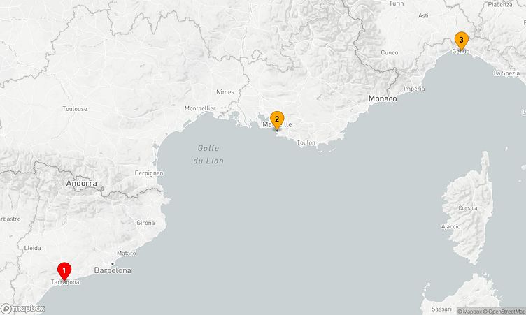 Auf Ihrer Route erwarten Sie Stopps in den Häfen von Tarragona, Marseille und Neapel, wo Sie lokale Sehenswürdigkeiten entdecken und unvergessliche Eindrücke gewinnen können.