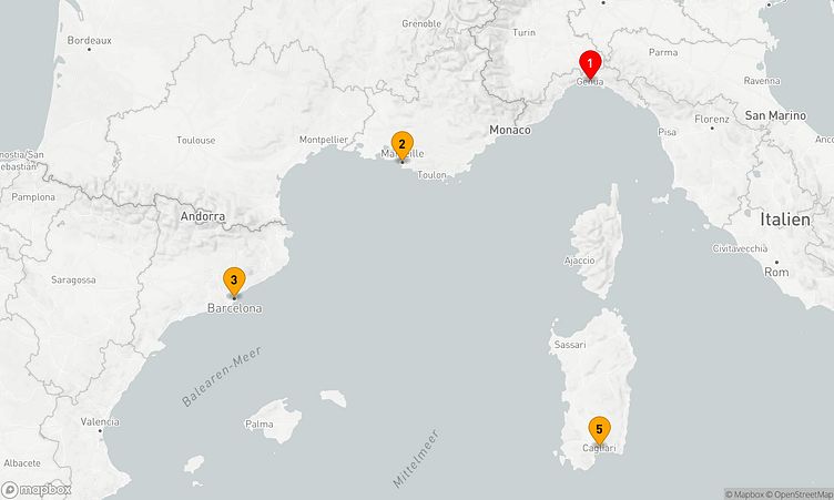 Während der Fahrt besuchen Sie unter anderem die Häfen von Genua, Marseille und weitere spannende Orte, die Ihnen einzigartige Einblicke und Entdeckungen ermöglichen.