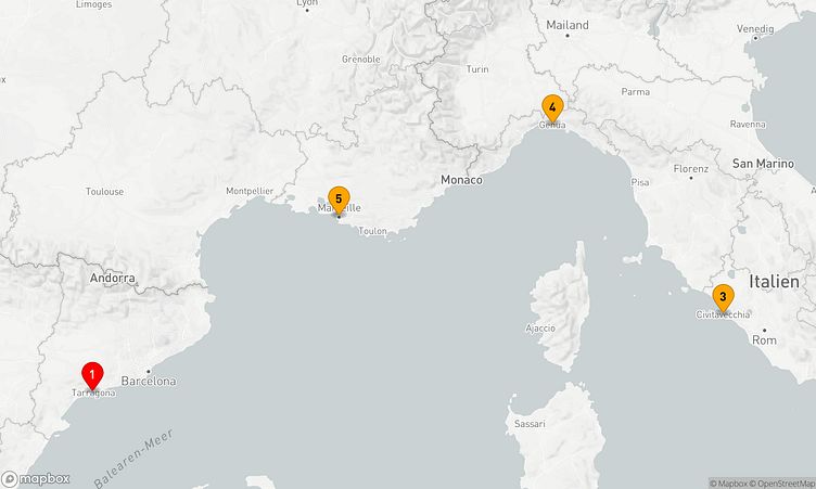 Auf Ihrer Reise besuchen Sie unter anderem die Häfen von Tarragona, Rom / Civitavecchia und Marseille, wo spannende Eindrücke von Land und Kultur auf Sie warten.