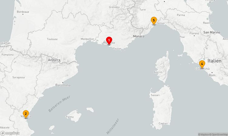 Auf Ihrer Reise besuchen Sie unter anderem die Häfen von Marseille, Valencia und Savona, wo spannende Einblicke in Land und Kultur auf Sie warten.