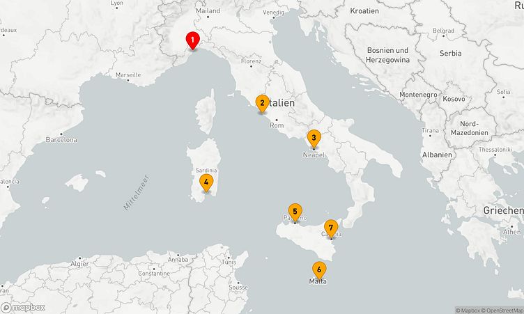 Freuen Sie sich auf Anläufe in Häfen wie Savona, Rom / Civitavecchia und Cagliari, die Ihnen authentische Einblicke und besondere Erlebnisse bieten.