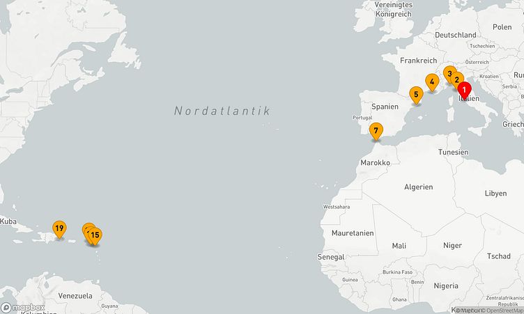 Am 29. Oktober 2026 starten Sie in Rom / Civitavecchia (Italien) und erreichen nach 18 Tagen am 16. November 2026 La Romana (Dominikanische Republik).