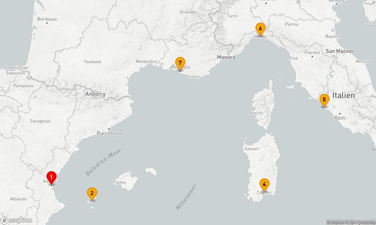 Auf Ihrer Route legen Sie Stopps in den Häfen von Valencia, Ibiza und Rom / Civitavecchia ein, um das besondere Flair und die Highlights der jeweiligen Orte zu entdecken.