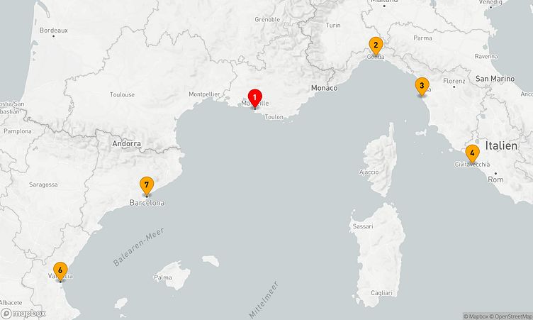 Während Ihrer Reise besuchen Sie unter anderem die Häfen von Marseille, Genua und Rom / Civitavecchia, wo spannende Einblicke in Land und Kultur auf Sie warten.