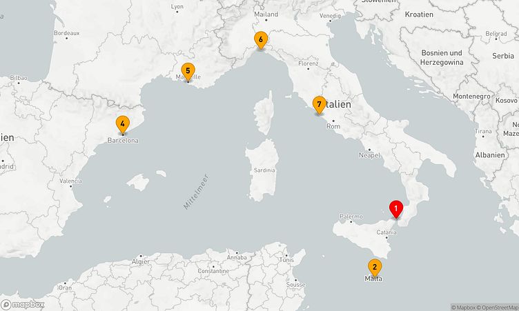 Auf Ihrer Fahrt legen Sie unter anderem in den Häfen von Messina, Valletta und Marseille an, wo spannende Einblicke in Land und Kultur auf Sie warten.