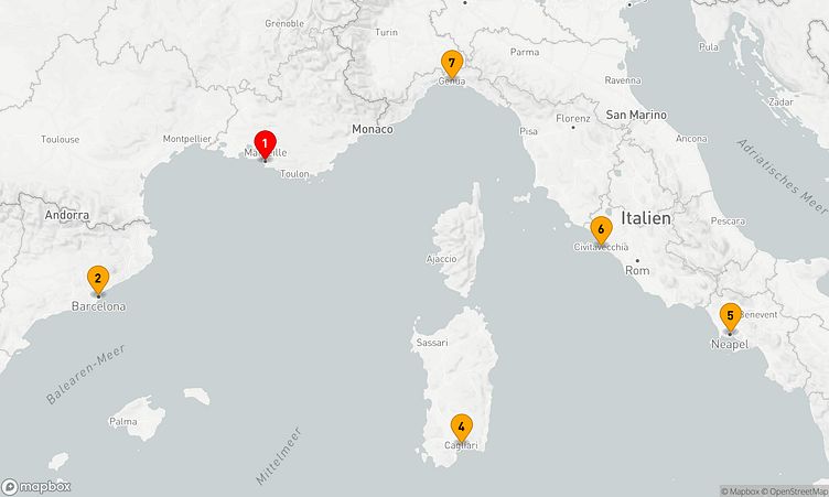 Freuen Sie sich auf Anläufe in Häfen wie Marseille, - und Neapel, die Ihnen authentische Einblicke und unvergessliche Erlebnisse ermöglichen.