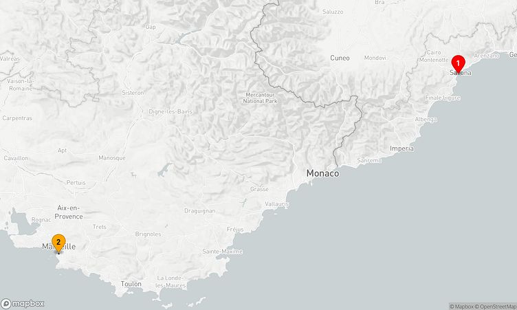 Ihre Kreuzfahrt startet am 08. November 2025 in Savona (Italien), und nach 1 Tagen endet sie am 09. November 2025 in Marseille (Frankreich).