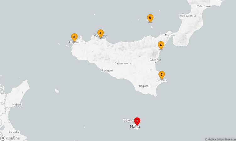 Während der Route halten Sie unter anderem in den Häfen von Valletta, Valletta und Palermo, um in das Flair und die Besonderheiten der Umgebung einzutauchen.