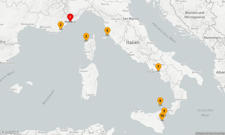 Auf Ihrer Reise besuchen Sie unter anderem die Häfen von Monte Carlo, Calvi (Korsika) und Salerno, wo spannende Eindrücke von Land und Kultur auf Sie warten.