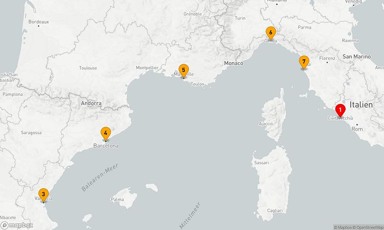 Auf der Route machen Sie Halt in den Häfen von Rom / Civitavecchia, Valencia und Marseille, um die einzigartige Atmosphäre und die Highlights der jeweiligen Destinationen zu erkunden.