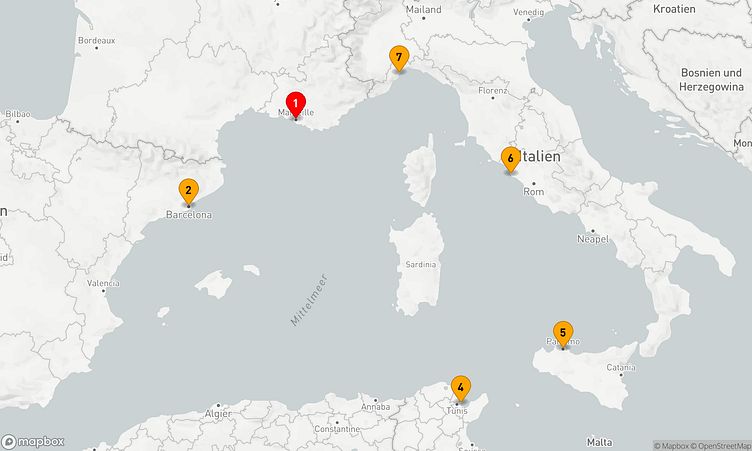 Auf dieser Reise erwarten Sie Stopps in den Häfen von Marseille, Barcelona und Palermo, wo Sie lokale Highlights und unvergessliche Eindrücke sammeln.