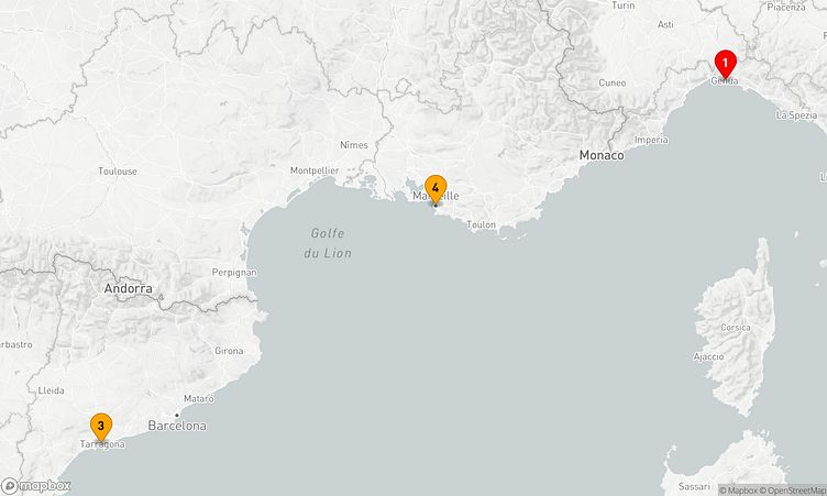 Auf Ihrer Tour besuchen Sie unter anderem die Häfen von Genua, Tarragona und Marseille, wo spannende Einblicke in Land und Kultur auf Sie warten.