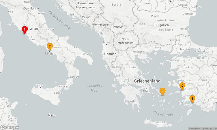 Auf Ihrer Reise besuchen Sie unter anderem die Häfen von Rom / Civitavecchia, Mykonos und Marmaris, wo spannende Eindrücke von Land und Kultur auf Sie warten.