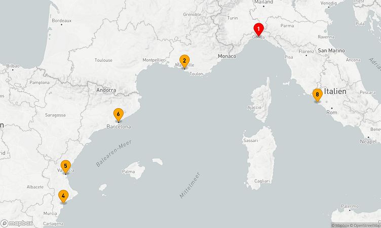 Freuen Sie sich auf Anläufe in Häfen wie Genua, Marseille und Valencia, die Ihnen authentische Einblicke und besondere Erlebnisse bieten.